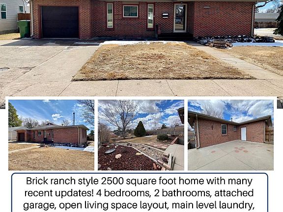 Brick ranch style 2500 square foot home with many recent updates! 4 bedrooms, 2 bathrooms, attached garage, open living space layout, main level laundry, private outdoor back patio, corner lot, and much more.