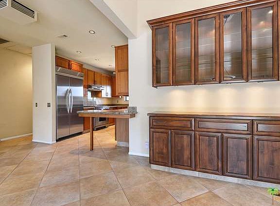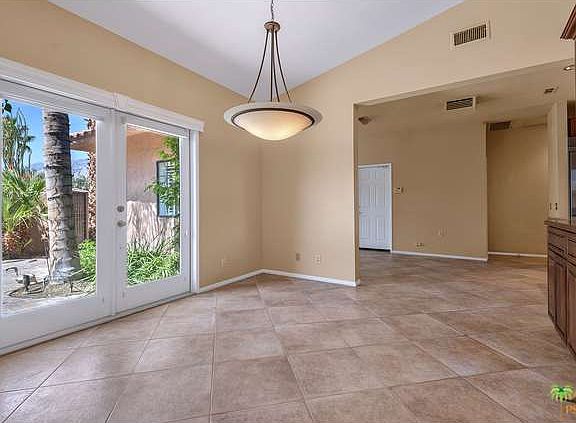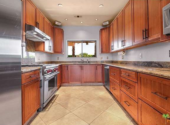 Nicely appointed and updated Movie Colony/Ruth Hardy Park contemporary home on a large lot. Master Chefs will be delighted with the Wolf six burner gas range, stainless steel appliances, cherry hardwood cabinets and acres of slab granite counter tops. Formal Dining Room features a custom built-in buffet with glass upper doors for showing off your china. Vaulted living room ceilings, marble fireplace and pre-wired for surround sound. Master suite is large and also includes vaulted ceilings. Jetted tub has a built-in heater so you can soak your troubles away and the water will stay nice and warm. Two additional guest suites both with private baths. Rich travertine tile flooring throughout the home. Two zones of A/C as well as evaporative coolers. Whole house water filtration system. Two car garage with tons of built-in storage and it's own separate evaporative cooler. Refreshing pool and spa. Energy efficient dual glazed windows. This is easy desert living at it's best.