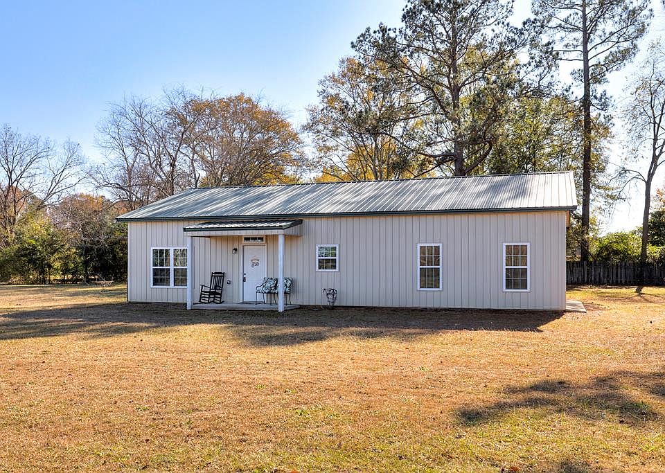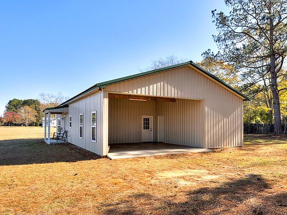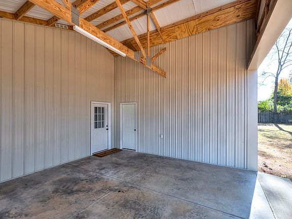 This 2 bed, 2 bath barndominum home is located on a large acre lot. The home was built in 2018, featuring granite countertops and luxury vinyl plank flooring, throughout the home. The sliding barn doors in the master bedroom led to a walk-in closet and a bathroom that has a double vanity. Carport area has a completed storage room and the carport itself could be closed in, heated and create an extra room to the home.