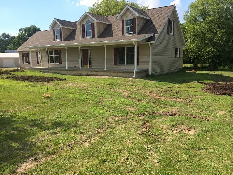 New Cape Cod home with a 2 car attached finished garage, 24x24 concrete garage approach, Sidewalk, open loft to upstairs, 6 panel solid doors & trim stained, total electric with dual zoned heating & air, 50' front porch, rear patio deck, city water, septic system & 28'x48' pole barn. Home sits on a country lot with mature tree's and small pond.