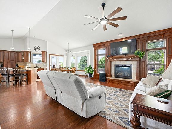 Welcome home! This GORGEOUS Stone Creek home is ready to be YOURS! The main floor is open and spacious, all while still feeling cozy and spacious! This former model home will wow you with the upgrades and details! The living room offers a gas fireplace with beautiful woodwork surrounding, wood floors, and large windows for natural light. The formal dining room is large with plenty of room for a large table for gatherings. In the kitchen, there's so much to love! There are granite counters, double ovens, HUGE hidden walk in pantry, and window overlooking the backyard! The primary bedroom is impressive, and the primary bathroom will have you feeling like you're at a spa everyday. And don't miss the massive primary closet - there's so much room! Rounding out the main floor are two additional bedrooms and a full bathroom. Heading downstairs, you'll be amazed at this space!! There is so much room to entertain in the family room. You'll also love the full wet bar with dishwasher to make gathering with family and friends that much better. There is also a nook that currently works as a workout area, but could also be a play area, office, or the perfect spot for a foosball table or game table! Rounding out the basement are two large bedrooms both with walk in closets, a full bathroom, and a large storage room. Outside, you'll love the fully fenced private yard, the covered deck, and great landscaped area. You're also close enough to walk to the neighborhood pool! What a bonus! Don't wait to see this one - it won't last long!