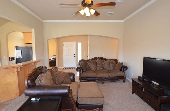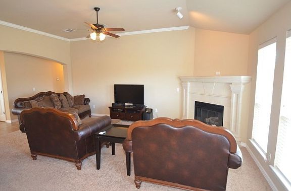Beautiful home with open floor plan boasting 3 spacious bedrooms, 2 full baths, and a home office. Kitchen, dining, living are all open and roomy. Amenities include stainless appliances, stone fireplace, master suite with shower and garden tub along with double vanity sinks. Storm shelter in garage for 6-8 people. Backyard features a beautiful 30’x15’ concrete patio added in 2018 and a wooden 10’x12’ pergola added in 2016.