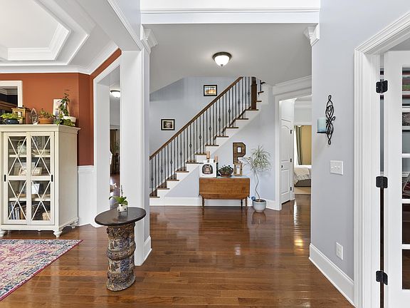 This fabulous home in Heritage is everything you have been looking for with 5 bedrooms and 5 bathrooms in a cul-de-sac resting on .59 acres! The home has been impeccably cared for by a professional house cleaner and landscaper for the past 7 years! Features gorgeous hardwood floors, 1st floor guest suite with full bath, formal dining room, butler's pantry, gourmet kitchen w/gas cooktop & double wall ovens, walk in pantry, screened porch, irrigation system, stone patio with a fire pit, 3 car garage, & 2 master closets with custom shelving. The 3rd floor bonus room with a full bath will give you all the space you need for game/movie nights! Updates: new gas water heater in 2022, new dishwasher, wine fridge, refrigerator, cooktop, and microwave in 2021! Swim, tennis, and golf community amenities are available. Come check out your new home!