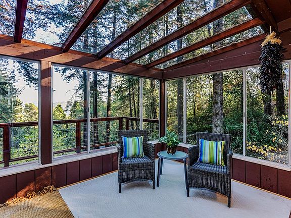 Just 6/10 of a mile from Hiway 9 to your private paradise! Feast your eyes on dogwoods and rhododendrons in your forest garden, sit by the fire pit on the flagstone patio, view the Scotts Valley fireworks from the deck, sleep under the glass ceiling in the solarium, hike the private trails up the road (or hike in Fall Creek State Park at the corner), or curl up with a book by the fireplace. This is a one of a kind property! Easy commute to Hiway 17 or Santa Cruz, and close to downtown Felton. Don't miss it