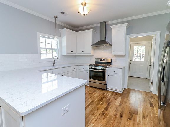 JUST REDUCED!!!! This brand new home in the popular Rosewood area is not to be missed! 3 Bedrooms, 2 Full baths with gorgeous hardwood floors throughout. Driving up to the house you will notice a beautifully landscaped exterior with circular drive and 2 parking places to the side of the house. The front porch welcomes you to an open concept living area with state of the art kitchen. Quartz countertops, tile backsplash, soft close drawers, stainless steel appliances and range hood over a gas range. Make your way to the huge laundry room with beautiful tile floors, extra cabinets, and mudroom nook. Off of the kitchen is the master bedroom with large walk-in closet and a stunning custom bathroom. Double vanity with granite, beautiful tile floor, and spa-like stand up tile shower with pebble floor and accents. 2nd and 3rd rooms have generous closets and share a spacious hall bath. This large corner lot overlooks the creek in the back. This is a one of a kind home and it won't last long!