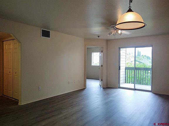 This newly remodeled condo is completely move-in ready! Located across the street from Fort Lewis College and the Hillcrest public golf course and this convenient location is a very short trip on the bike path to downtown Durango. The condo has been freshly remodeled featuring brand new and stylish hard-surface flooring, new paint, new cabinetry hardware, and new stove, microwave and dryer. This unit has ground level access WITH mountain views from the covered balcony, where the additional storage closet is located. There is one assigned parking space out front, with numerous unassigned parking spaces available for guests. Silver Peak Condos offer a Fitness Center (currently closed due to Covid restrictions), a conference center (generally available with reservation), playground and picnic area, with a convenience store next door. Ultra clean, light and bright, this is an unbeatable value for in-town Durango living!