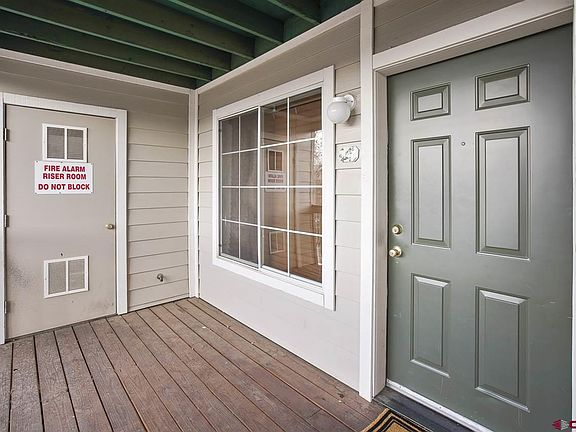 Updated first floor 1 bedroom unit at the back of the complex with views and trail access. 2016 updates include new carpet, new wood blinds, new washer & dryer & new paint. Ownership includes fitness center, business center, playground and picnic area. Monthly HOA dues include most utilities. Near Ft Lewis College and Hillcrest Golf Course and only a few minutes to downtown Durango.