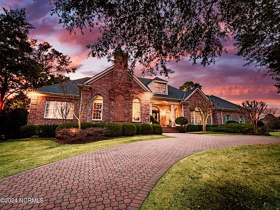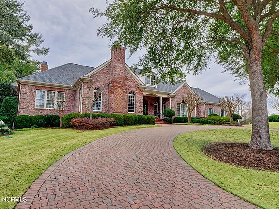 Located on a beautiful wooded bluff at the corner of Harborway Drive and Turnberry Place with views of the intracoastal waterway, this all brick custom designed Landfall residence was quality built by Old South featuring nearly 4200 square feet. The 3 bedroom 3 full, 2 half baths design includes a gracious foyer opening into the great room with fireplace and large chef's kitchen with center island. A formal dining room is flanked by a vaulted study complete with masonry fireplace. A huge first floor master suite (20x29) includes an elegant updated bath with frameless glass shower and separate soaking tub. The master suite and bath share a see thru fireplace. There are two separate screened porches-one off the kitchen and a private screened porch for the master suite. Upstairs is a loft sitting area and two bedrooms each with large walk in closets. There are two walk-in attics off either end of the house that could easily be finished with an additional 1000 square feet. The oversized two car garage features a separate conditioned work shop and storage area. A circular brick paved drive greets guests with a gracious, welcoming feel and beckons one to explore the grounds that this master gardener has thoughtfully designed and maintained through the years. Flowering shrubs and perennials will delight the new owner with seasonal color throughout the year.