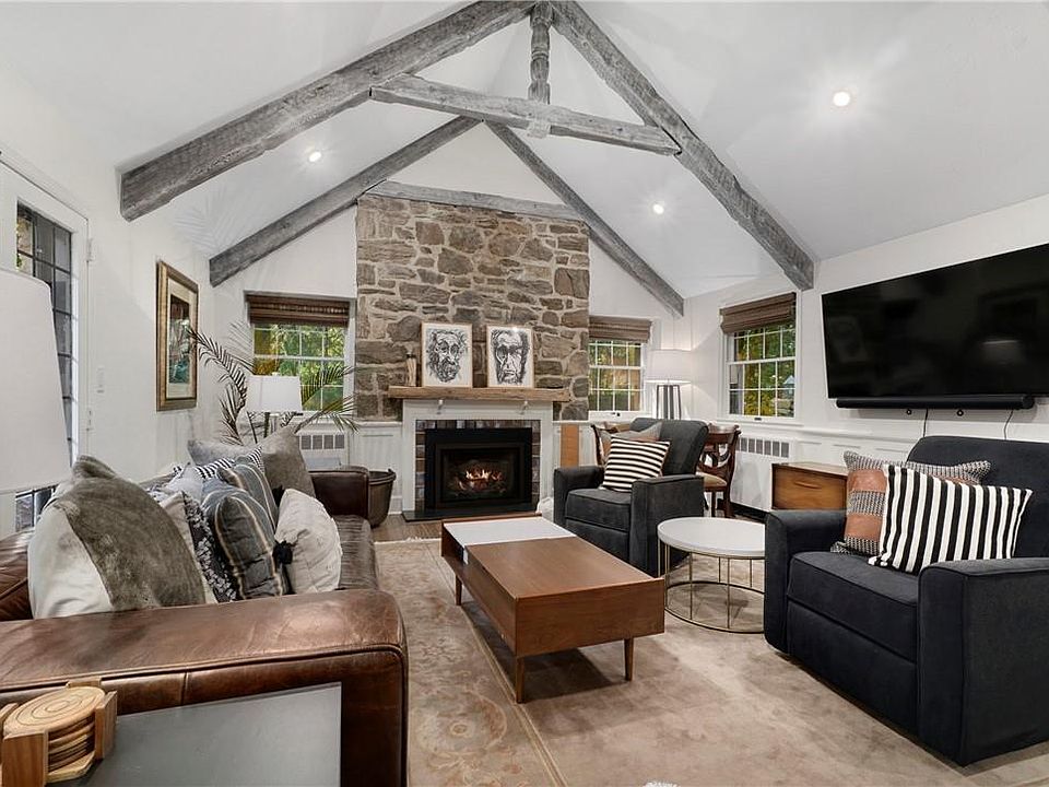 Welcome to this exquisite piece of paradise...your own private oasis. This home is a completely remodeled hidden gem with fantastic upgrades - metal roof, gorgeous wood floors, top of the line appliances, and more. Enter through a private gated driveway and see beautiful ivy hanging along the side of this charming countryside cottage. Upon entry are stunning shiplap walls that continue up the staircase to the 2nd floor hallway. Foyer also features a tin ceiling and half bath. Radiant heated herringbone brick flooring leads to a brand-new custom kitchen with Thermador appliances and quartzite countertops. The living room boasts cathedral ceilings with exposed beams along with a gas fireplace. Primary bedroom on first floor features a wood burning fireplace (formally the dining room, can easily be converted back). Flexible room off kitchen for nanny/in-laws/playroom with adjoining bath. All new Andersen windows were installed throughout the home along with tinted windows in the living room to provide additional privacy. Upstairs are two additional bedrooms and full bath with radiant heated floors. New Rheem split A/C & Heating units throughout. Plenty of closets and storage space. Central vac on 1st floor. Outdoor privacy is not an issue on this 2+ acre, fully fenced property. Trees surround the backyard for an additional illusion of going away to your favorite spa retreat. Two pergola coverings attached to the house provide plenty of space to entertain guests. Enjoy a custom Gunite saltwater/heated pool with waterfall (new custom pool cover included) and pool house with exterior shower. Exterior also has two French drains, lawn sprinkler system, and two new storage sheds conveniently tucked away along the back of the house. Sonos Bluetooth system in every room and outside. (Will consider selling home fully furnished) Additional Information: Amenities:Storage,HeatingFuel:Oil Above Ground,