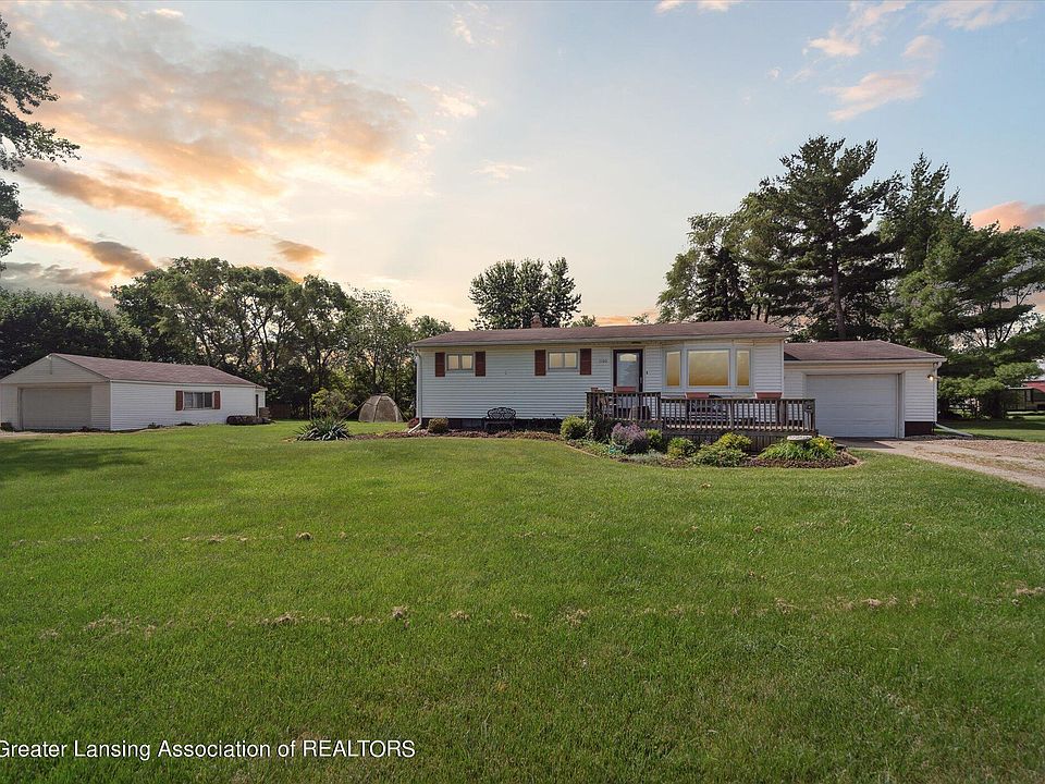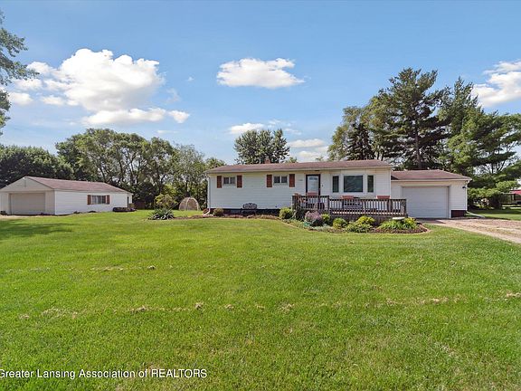 Wonderful 3 bedroom, 2 full bath ranch home with a fantastic patio and a 4 season room. Features a 1-car attached garage and a spacious detached garage for extra storage needs. The basement is full and partially finished. Ideally located off US 27, perfectly situated between Dewitt and St Johns. Don't miss out on this gem!