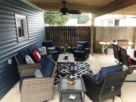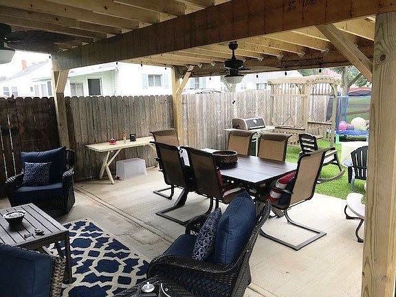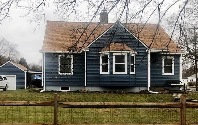 Cute cape cod on corner lot. 4 bedrooms, fireplace with many upgrades including updated kitchen & bathroom, and offers an open dining/living room area and central air! Outside has great curb appeal with great play area for kids, added patio with ceiling fan off garage, fencing and more!