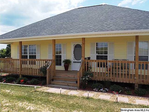 This is a great country looking home with large country porch across front. This home is move in ready with 3 bedroom 2 bath. Den has hardwood floors with vaulted ceiling. Large eat in kitchen with stove,dishwasher and built in microwave. Large master bedroom w/ beautiful master bath that has a Garden tub and walk in closet. This home is a short sale