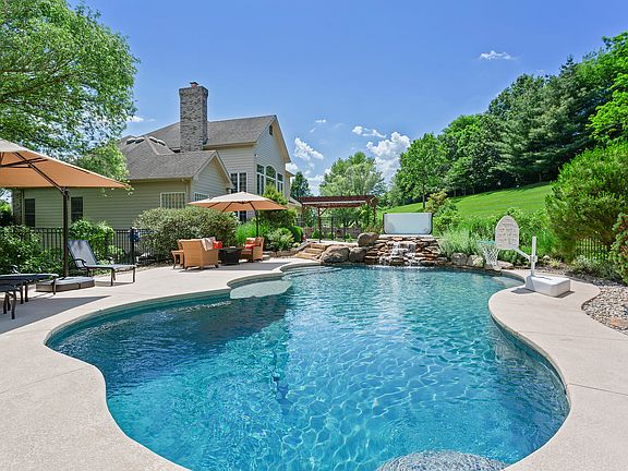 Wow! Stately 1.5 story on a private acre lot at the end of a quiet cul-de-sac in desired Greystone Subdivision. This four bedroom (potential 5th in lower level), four full, two half bath property has custom finishes throughout! Gleaming wood floors, gourmet eat in kitchen with breakfast bar, custom cabinetry, granite counters, stone island and stainless appliances. Vaulted hearth room, main floor office/den, formal dining, two story great room with fireplace and built ins, wet bar and main floor master with coffered ceiling, his/hers closets and luxury ensuite bath. Upstairs find a loft space with three spacious bedrooms, two baths and a study area. Finished lower level with home gym, second wet bar area, game room, wine closet, media room, addl. sleeping area and full bath. Backyard oasis made for entertaining has a pergola covered patio with cooking station, free form inground pool with stone waterfall and spa. 3 car garage, main floor laundry. Award Winning Rockwood School District.