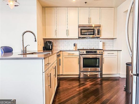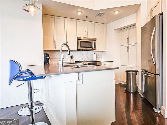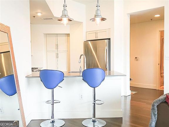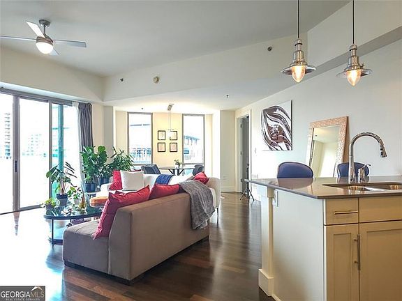 Exceptional 7th Floor Unit with Unobstructed Skyline Views in the White Provision Residences of West Midtown! This beautifully appointed 7th-floor, east-facing unit at the highly sought-after White Provision Residences offers breathtaking skyline views from every room and one of the most functional and desirable floorplans in the building. Located in the heart of Atlanta's vibrant West Midtown and Historic Meatpacking District, this home delivers the perfect blend of luxury, comfort, and convenience. The open-concept layout features 10-foot ceilings and expansive floor-to-ceiling windows that flood the living, dining, and kitchen areas with natural light. A true chef's kitchen anchors the space, complete with an oversized island, Silestone countertops, tile backsplash, solid wood cabinetry, a pantry, and premium KitchenAid stainless steel appliances. Unlike many units in the building, this home includes a dedicated dining area-ideal for both everyday living and entertaining. Step out onto the private walk-out balcony to take in stunning, unobstructed city views. The spacious primary suite easily accommodates a king-sized bed and boasts a spa-inspired en-suite bath with double vanity, a seamless glass walk-in shower, and a separate soaking tub. A well-proportioned secondary bedroom offers flexibility for guests, a home office, or both. Ample closet space and thoughtful design details, including Kohler fixtures, add to the home's luxurious feel. Residents enjoy access to top-tier amenities including 24-hour concierge service, gated and secured parking, a rooftop pool with panoramic views, a fully equipped fitness center, and a stylish resident club room. Just steps from award-winning restaurants, boutique shopping, and top entertainment venues, this location offers easy access to Downtown Atlanta, Buckhead, Midtown, Virginia-Highland, and Inman Park. This is an outstanding opportunity for buyers seeking upscale intown living in one of Atlanta's most dynamic and walkable neighborhoods. Copyright Georgia MLS. All rights reserved. Information is deemed reliable but not guaranteed.