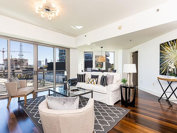 Set foot on the sidewalk in West Midtown and you get an immediate feeling for the vibrancy all around. White Provision Condominiums, part of the Westside Provisions District, is right at the heartbeat of the West Side, and #413 is your ticket to enjoy the best this dynamic neighborhood has to offer. This beautiful and spacious condominium welcomes you with floor-to-ceiling views out over its expansive balcony, framing a vista of the towers of midtown. A graciously sized open floorplan offers plenty of room for living, dining and relaxing. Two large bedrooms, each with roomy full baths, ensure comfort and privacy for a roommate situation, or the second bedroom makes a perfect office. The kitchen with breakfast bar is designed for convenience and entertaining with plenty of counter and storage space. Enjoy easy access to a gorgeous pool terrace and fully equipped fitness facility. White Provision also offers residents a reservable guest suite, Two deeded garage parking spaces make this unit extra desirable, but you can walk to shops, restaurants, art galleries, theater and more from this fabulously located building. Come experience the cool vibe of the West Side lifestyle!