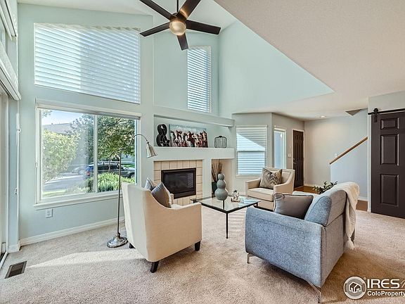 This corner end unit in the Village II complex boasts a prime location, with a southern exposure that ensures abundant natural light. The main floor features a spacious kitchen with granite countertops, a separate dining area, a sunlit living room with cathedral ceilings, a gas fireplace, and a half bathroom. Upstairs, you'll find two bedrooms and a full bathroom. The owners invested $70k in basement and home renovations, which includes a conforming bedroom, a 3/4 bathroom, a cozy office nook, and a large family room. The unit has a great vibe and shows beautifully. The outdoor space features a spacious enclosed patio that leads out to a grassy area. The property also includes a detached one-car garage. Conveniently located near shopping, coffee shops, restaurants, and the Coal Creek bike and hiking trail. Just a short walk to Centaurus High School. Radon mitigation is installed. Central AC. Plenty of storage. Past tenant was paying $2,700/month. Must see property!