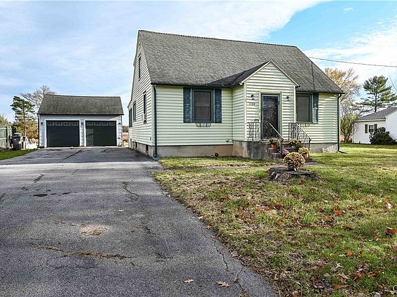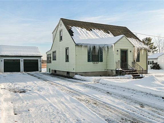 The property includes a detached two-stall garage, a wide paved driveway, and a deep backyard ideal for gardening, gatherings, or pets. Public water, gas-fired boiler with radiator heat, and a spacious .52-acre lot offering both privacy and open views.