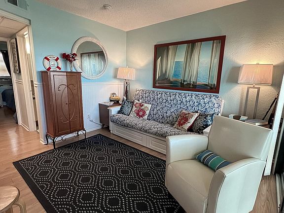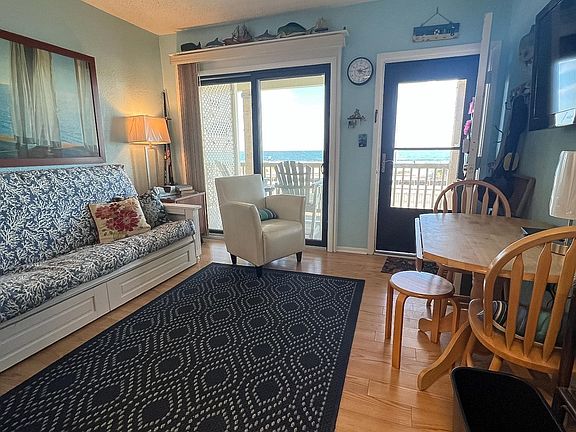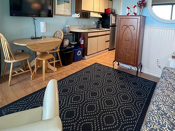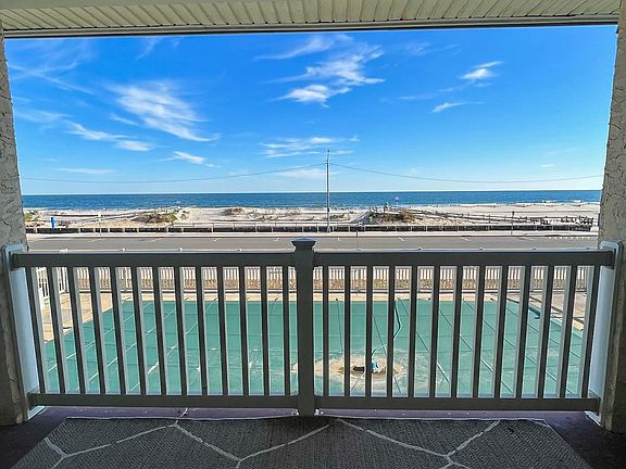 This comfy cozy, one bedroom, one bath property DEFINES Location! Location! Location! It is a rare 2nd floor, year-round, ocean front condo with unobstructed breathtaking views, and only steps to the beach. Sit on the balcony each morning to catch the sunrise and watch pods of dolphins; be entertained by surfers catching a wave before work; and sportsmen surf fishing. Enjoy an at home resort day: hear the surf and fudgie-wudgie man from the comfort of your couch taking a leisurely dip in the pool. The open floor plan creates a seamless flow between the living area and kitchen for entertaining guests. Other amenities include an assigned parking space, bike rack, and on-site trash pickup. The condo fees cover the trash removal, exterior maintenance, water and sewer, and pool maintenance. The heater, central air, and water heater are only 3 years old. For those seeking a rental income, this unit already has weeks booked for 2024 at $1400 a week. Pet owners will be pleased to know that this property allows for one pet per owner, ensuring that furry family members are welcomed, too. Located in a desirable area, this condo offers proximity to numerous attractions and conveniences. Whether you’re excited about a night on the Wildwood Boardwalk, or exploring local shops, restaurants, fishing charters, dolphin and whale watching…. there is something here for everyone! Don’t miss out on this opportunity to own a beachfront condo with great rental potential. Contact us today to schedule a viewing a make this beautiful property your own.