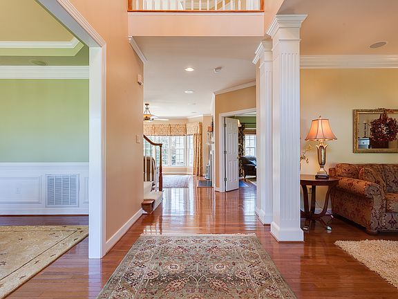 Move in ready--This 5 bedroom, 4.5 bath transitional in the Kingham section of the Grove features an open design for easy living. White kitchen cabinetry surrounds a granite eating bar while the adjoining morning room comfortably seats 6 or 8, and both flow seamlessly into a spacious great room. The great room shares a two sided fireplace with a cozy library. Hardwood flooring extends throughout the main level from the welcoming foyer to the living and dining areas on either side of the entryway. The second level features a huge master suite with sitting area, 2 walk-in closets, and adjoining bath. A loft, 3 additional bedrooms and two more baths complete the second level. Above, on the finished third floor, is an additional bedroom (or playroom/office/workout space) and full bath, plus easy access attic storage. Expansive rear patio, common area on cul-de-sac in front of house. Kingham at The Grove is a centrally-located Midlothian community with outstanding schools, clubhouse, pools, playgrounds, jogging paths and other amenities.