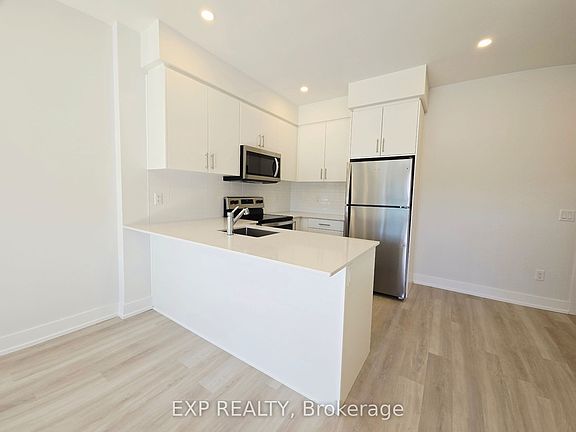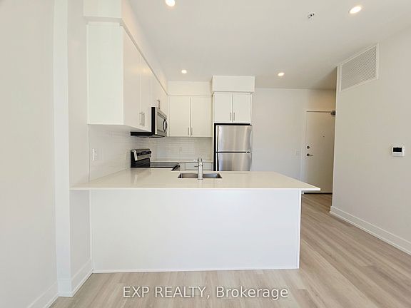 Be the first to live in this stunning, brand-new 1-bedroom condo with parking at Lackner Ridge! Combining sleek modern finishes with an unbeatable Idlewood location, this suite offers both style and convenience - just steps from shopping, trails, and essential amenities. The bright, open-concept layout feels exceptionally spacious, featuring upgraded pot lighting and luxury vinyl plank flooring throughout. The contemporary kitchen boasts quartz countertops, a stylish backsplash, and stainless steel appliances, creating a perfect space for cooking and entertaining. The inviting living room opens onto a private balcony, ideal for relaxing or entertaining. Additional features include a modern 4-piece bathroom, in-suite laundry, a front hall closet, a storage locker conveniently located near the unit, plus one exclusive parking space. The secure building offers controlled entry and an elegant party room for hosting family events. Enjoy practical, contemporary living in one of Kitchener's most desirable new communities!