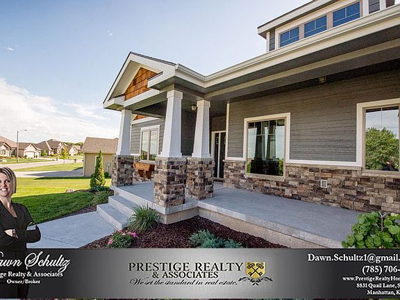 GORGEOUS! Custom design w/luxurious finishes! 5 beds/3 baths has distinguished living room w/hickory floors, 11’ ceilings, exposed beams & fireplace w/stone surround! Kitchen boasts cherry cabinets, marble & granite counter tops, SS appliances! Master retreat has dual tiled shower, walk-in closet, & 12’ ceilings w/exposed beams. Customized basement includes wet bar w/granite countertops, copper sink, glass front cabinets, full size refrigerator, surround sound & built ins. Covered deck w/composite floor! Professionally landscaped/irrigation system. Click here for the video tour: https://www.youtube.com/watch?v=mLUpVjdWWfU&feature=youtu.be . Contact Dawn Schultz at 785-706-1426!