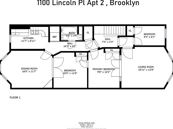 This 1000 square foot apartment home has 2 bedrooms and 1.0 bathrooms. This home is located at 1100 Lincoln Pl #2, Brooklyn, NY 11213.