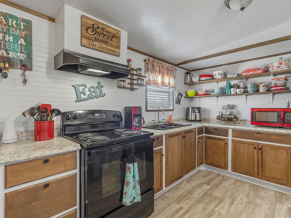 Sellers are motivated! Welcome to this charming, renovated mobile home nestled on an acre of land surrounded by mature trees, offering tranquility and privacy just outside city limits. This 2-bedroom, 2-bathroom residence features a split floor plan, providing optimal space and privacy. The master bedroom features a walk-in closet, and the bathroom has dual sinks, updated vanity and walk-in shower for added comfort. With no HOA to restrict your lifestyle, this property offers peaceful country living. Don't miss the opportunity to make this delightful home yours, where comfort meets nature in a serene setting.