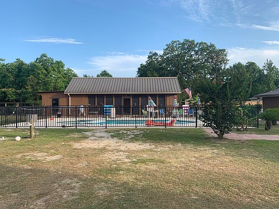 The house is a beautiful it has a fenced backyard and swimming pool and pool house and shed. It also has a circular drive way!