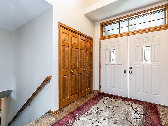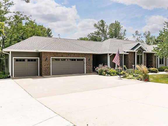 This stunning in town acreage could be your own private oasis. Location is convenient to everything! The large yard is surrounded by mature trees, has flat area for kids to play and backs to the creek and bike trail. Take in the view from the new deck or while enjoying your own swim spa, which was added in 2019! The home was a 2001 parade home and again in the 2018 remodelers parade for the kitchen, great room and primary suite. The kitchen features upgraded cabinetry with pull out organizers, waterfall quartz counters, and marble woven backsplash. Relax in the completely remodeled primary bath with double vanity, heated floors, air tub, and walk in tiled shower. Gleaming wood floors, formal living space and dining, main floor laundry, vaulted ceilings, the list goes on and on. Lower level has wet bar, family room, additional bed and bath, plus bonus space for workout, play room, etc. Plenty of storage and a garden shed area. Newer HVAC, water heater and owned water softener with reverse osmosis. Updates extend to the the exterior with new siding (insulated behind), soffits, gutters and roof. Extra parking space and hook up for RV on the side of home.