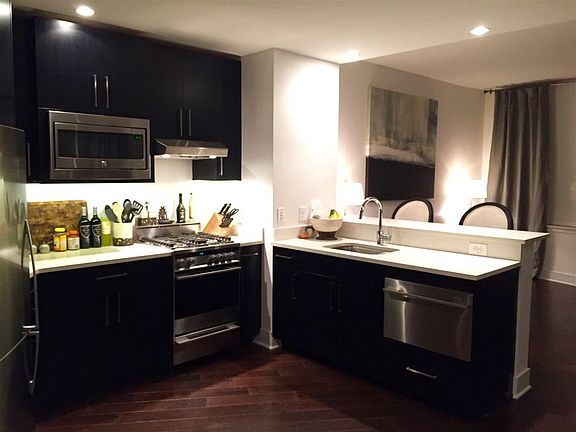 Amenities galore in 1100 Maxwell Place. This true one bedroom with gourmet kitchen features quartz stone counters, Viking & Bosch stainless steel appliances and custom cabinets. Parking space on the same level as your home. Just in time for pool season! Community features 24 hour concierge, 2 pools, 2 gyms, 2 community rooms, and to top it off, a rooftop with a BBQ area, fireplace and outdoor tv! Private shuttle to the PATH. Bus & Ferry conveniently just around the corner. Rent includes, hot water, amenities and parking .