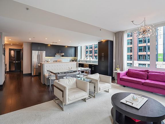 Enjoy rare extra tall ceilings in this luxury home located in the Maxwell Place community. This stunning 2 bedroom, 2 bathroom corner unit is extra large with 1500sqft of south facing, sun drenched living space, and includes an open floor plan with floor to ceiling windows, rare 10' ceiling height, and hardwood floors throughout. The spacious kitchen features stainless steal Viking appliances, oversized center island, and custom built in banquette. In the primary bedroom you will find a walk-in custom closet and large ensuite with double vanity. This home has been completely updated with custom finishes and tastful upgrades. Other features to note include, in-unit washer/dryer, NEST Thermostats, and deeded parking on the same level! Maxwell Place features top-of the line amenities and services including 24-hour concierge, resident’s lounge, 2 rooftop pools, rooftop fireplace, BBQ Grills, 2 fitness centers, yoga room, 2 residence lounges, 2 children’s playrooms and movie theatre! The building also includes Shuttle to PATH and is steps away from the Hoboken North ferry for a quick trip to Wall Street, 8 minutes to downtown, and 10 minutes to midtown! And for piece of mind this unit also includes a home warranty.