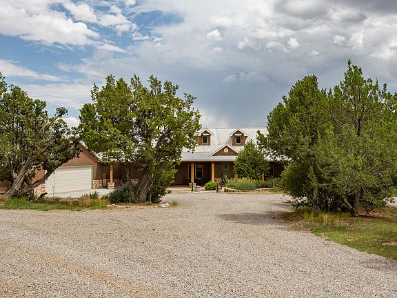 East Mountain Marvel... Custom Northern New Mexico Style home situated on 4.9 acres. Open bright floor plan w extraordinary features ! Features includesolid wood doors, massive ceiling trusses,custom cabinets, granite counter tops,, stone tile, stack stone accents. Loft/ 2nd living area, lots of storage space, beaurtiful baths. Gourmet kitchen is a chefs dream for cooking & entertaining. Beautiful covered portal w/ stone pavers, deck off back for entertaining and enjoying views. Private gate to property, wooded with gorgeous exterior details and landscaping . Entranosa water, owned propane, w/ natural gas availability coming soon. This is truly a magnificent mountain home!!