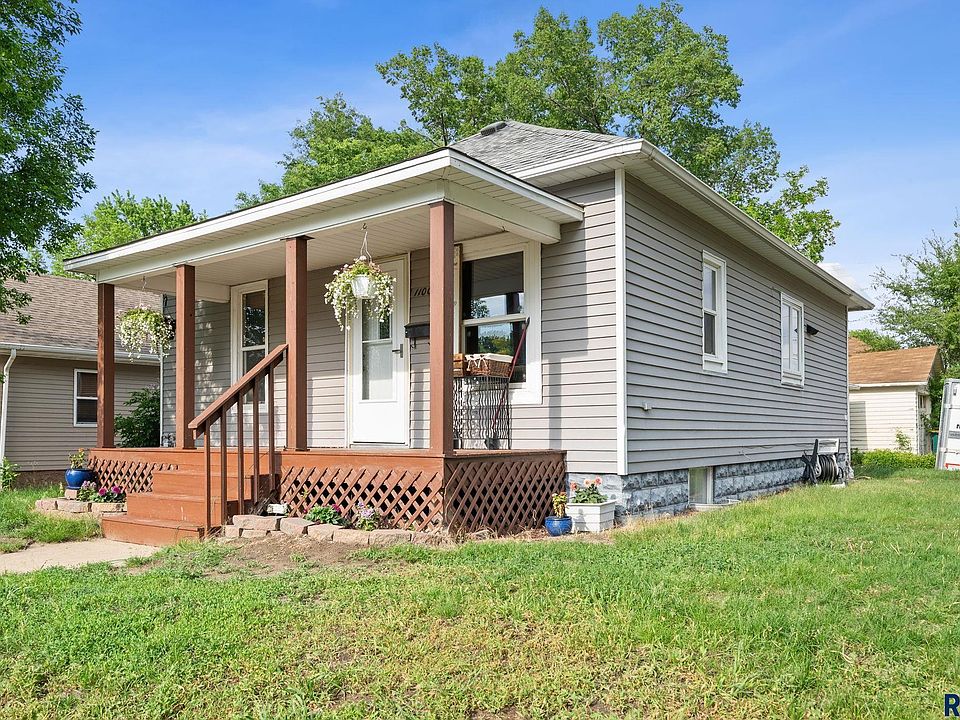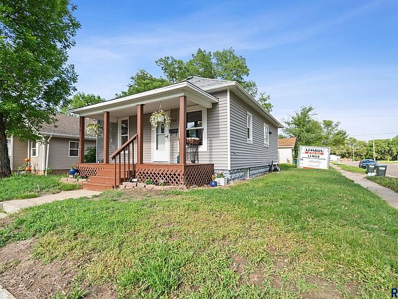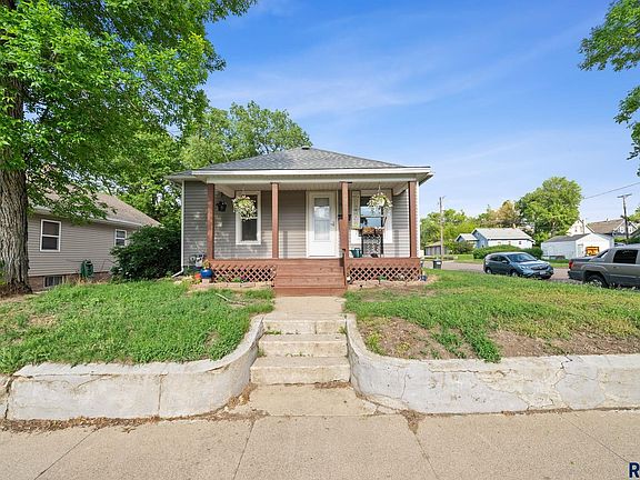 Charming and move-in ready, this delightful home is perfectly located just a short walk from Falls Park and the vibrant heart of downtown. Inside, you'll find a welcoming living room highlighted by a cozy electric fireplace, and a modern kitchen complete with a center island that's perfect for casual dining. The main level offers two generously sized bedrooms with walk-in closets, while the basement includes a spacious non-legal bedroom ideal for guests or extra living space. On warm South Dakota evenings, relax on your new covered front porch and enjoy the sounds of live music drifting over from the Levitt. This house is calling your name!