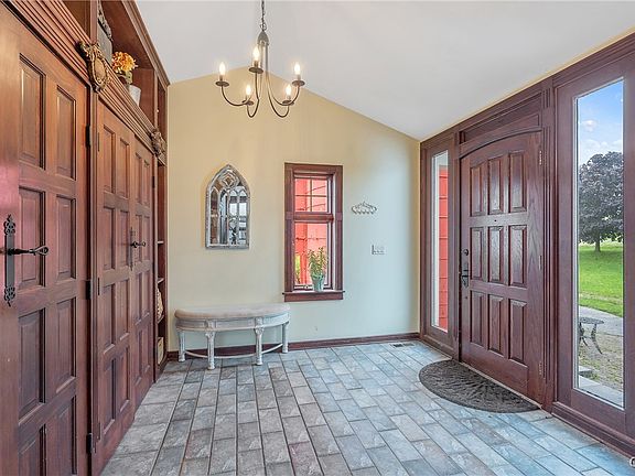 Discover the perfect blend of rustic charm and modern convenience in this extraordinary farmhouse, offering over 6,000 sq. ft. of updated living space. With three generously sized bedrooms and three full bathrooms, this home is designed for both comfort and style. The heart of the home, a completely remodeled kitchen, shines with contemporary finishes, while the expansive family room and game room, complete with a bar, create ideal spaces for hosting and relaxing. The impressive three-season room offers endless possibilities, easily convertible to meet your needs. Set on over 9 acres, this property is a private oasis, featuring multiple decks with scenic views, a hot tub for serene evenings, and a dedicated fire pit area perfect for outdoor gatherings. Major updates including new electrical, plumbing, and a new roof ensure this home is move-in ready. This unique property offers limitless potential and is a must-see for anyone seeking country living with modern amenities.
