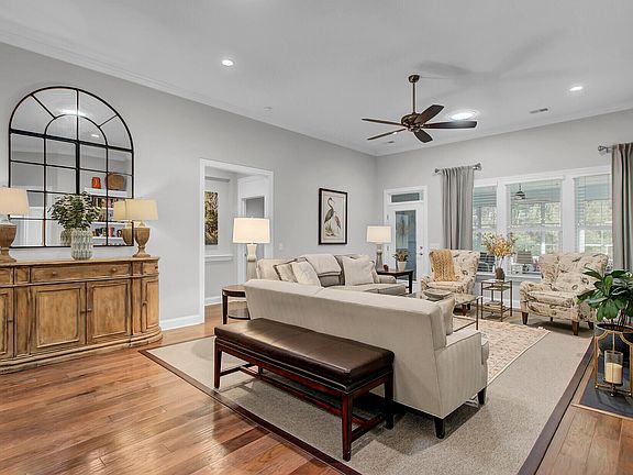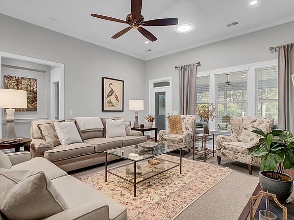 Beautiful home in Gated 55+ community. The oversized front porch welcomes you into this open 4 bedroom and 3.5 bath home that comes with many custom features. Inside you will find beautiful hardwood flooring, designer grade ceiling fans and light fixtures, gas fireplace, stainless appliances, gas range, Kitchen island with power, large pantry and separate formal dining room with tray ceiling. The office has French doors for privacy and plenty of natural light. The large open family room offers custom built bookshelves. The two large guest rooms share a full jack-n-jill bath. The master bedroom at the back of the home is spacious enough to accommodate large furniture and the ensuite offers dual sink vanity plus a separate make up station, a large walk-in shower and large walk-in closet.The spacious upstairs Man Cave/Bonus room has its own private full bath and closet and can be used as 4th bedroom. The oversized vinyl enclosed tiled back porch is rooming enough to entertain all year and overlooks the beautifully landscaped fenced yard and a private wooded area. Other great features include, the oversized garage with epoxy flooring, whole house generator, whole house purifier, smart thermostat and alarm system, irrigation system, and gutters, please see additional docs for full list of upgrades. The charming historical neighborhood amenities include: private clubhouse, fitness center, pool, tennis, walking trails, and more.