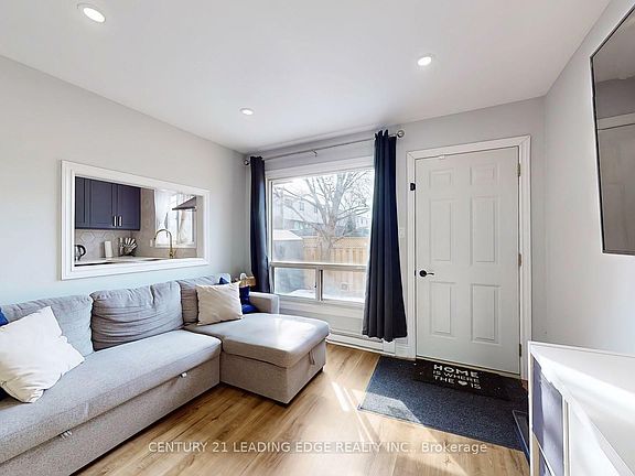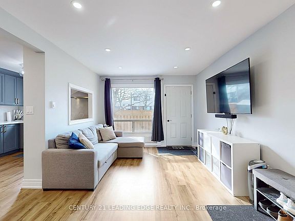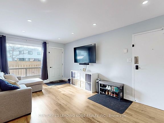 Welcome- This beautifully renovated end-unit townhouse offers modern upgrades and a fully finished basement in a prime location just minutes from the waterfront. The open-concept layout features smooth ceilings with pot lights throughout the main floor, creating a bright and inviting atmosphere. The contemporary kitchen is designed with quartz countertops, a large undermount sink, a stylish backsplash, and sleek cabinetry. A custom glass handrail adds a sophisticated touch, while wainscoting paneling and designer pendant lighting enhance the home's elegant appeal. Situated close to parks, schools, and transit, this home is move-in ready and designed for comfortable, modern living. Schedule your showing today.