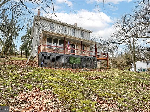 Beautifully renovated 1860's Farmhouse just a stone's throw from Conodoguinet Creek. This home sits proudly on a hill overlooking the creek. It offers the most charming curb appeal with beautiful stone and a covered deck that runs the length of the front. Each and every room is filled with charm and character. The first thing that catches your eye is the hardwood floors throughout much of the home. The kitchen is warm and inviting with wood cabinetry, stunning granite countertops, a large island with seating, exposed beams along the ceiling, and a new fridge, dishwasher, sink, and faucet. The french doors off the kitchen lead to a covered back porch perfect for Summer grilling. The mudroom is next to the kitchen and offers 3 closets for plenty of storage and pantry space. The family room is next with wood floors, wood plank ceiling, stone and brick accents, large windows and skylights for plenty of natural light, and a wood stove. It also has a bar with seating and a ladder to a cozy loft area. The dining room boasts a coffered ceiling, picture frame wainscoting, a built-in china cabinet, and an antique chandelier as the centerpiece. The main living area features both a pellet (new 2023) and wood stove. It has large windows to enjoy the view, two built in bookshelves that flank french doors leading to a laundry area and half bath. Up the stairs you will find three generous bedrooms each with exposed wood beams and wood floors. The primary bedroom has a vaulted ceiling with skylights and three windows to let in plenty of natural light. The walk-in closet is the cherry on top. The main bathroom is huge and offers a beautifully tiled walk-in shower, soaking jet, tub, and double sinks. A spacious shed and full, dry basement offer plenty of additional storage. The yard has been lovingly landscaped with a water feature, fire pit area, and peach trees. Bring your fishing gear and kayaks to fully enjoy all this property has to offer.
