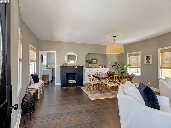Built in 1907 on Park St when Alameda was fast becoming an important East Bay hub, this single-story Craftsman jewel features 2 bedrooms, 1 bathroom, an open living room/dining room, an updated kitchen & a large basement and attic for plenty of storage. Located between Otis Dr & Encinal Ave, the home is just minutes to the South Shore Center's many amenities, TJ's, the shoreline/beach and, in the other direction, just 2 blocks to many of Alameda's most loved restaurants, cafes & boutiques. Beautifully updated for a contemporary lifestyle, the present owner has thoughtfully maintained the home's original vintage aesthetic and charm. Vintage features include the original oak floors (newly refinished), bay windows, a fireplace, 9-ft ceilings, vintage doors and hardware, and a built-in dining room sideboard. Updates include quartz kitchen counters and Shaker-style cabinets, and stylish new light fixtures, dual-pane windows and fresh interior paint throughout. Main floor laundry nook. Sweet, private backyard features a brick patio + walkways and anchored by a tall, sculptural Japanese maple tree. New + refreshed landscaping + redwood fencing highlight the home's wonderful curb appeal! Take advantage of this fabulous central Alameda location from this delightful Craftsman home!