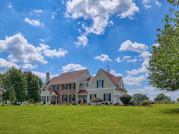 Discover an exceptional Bucks County retreat at 1100 Pineville Road, set on over two acres of beautifully landscaped grounds just moments from New Hope, PA and Doylestown, PA. A long, private approach framed by mature trees leads to this impressive stone residence, where refined craftsmanship and modern comfort come together seamlessly. Inside, a dramatic two-story entrance sets the stage for sun-filled, inviting spaces. Rich hardwood floors, extensive millwork, and an easy-flow layout create an atmosphere that’s both warm and upscale. The formal living and dining rooms are perfectly suited for hosting, while a quiet, built-in office provides a polished workspace. The chef’s kitchen serves as the home’s central hub, outfitted with custom cabinets, granite surfaces, premium appliances, and a generous island. A bright breakfast area opens to the soaring great room, where a striking stone fireplace and sweeping windows frame views of the property’s resort-style backyard. The second level offers a serene primary suite—complete with dual custom closets, a spa-quality bath, and a flexible sitting area—along with spacious secondary bedrooms and well-appointed bath. The finished lower level adds another dimension to the home with its full bathroom, dry bar, game and billiards space, stacked-stone theater room with fireplace, fitness area, and multiple lounging zones. Whether entertaining a crowd or unwinding at home, this level is designed to accommodate it all. Step outside to your private escape: a heated pool and spa surrounded by lush plantings and thoughtfully designed hardscaping. A covered pavilion with built-in gas grill and refrigerator makes outdoor dining effortless, while several seating areas offer the perfect backdrop for anything from summer parties to quiet evenings under the stars. With a three-car garage, abundant storage, and attention to detail throughout, this home delivers a rare combination of elegance, comfort, and resort-style living. 1100 Pineville Road offers not just a place to live, but a luxurious lifestyle to enjoy every day and is located in award winning Central Bucks School District. The pictures of the sunset from your new back yard oasis…….priceless!