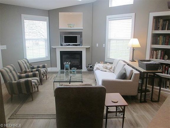 Immaculate two bedroom ranch condo in the Highlands development. As you enter through the front door, you will be thrilled with the open concept great room, dining room & kitchen featuring vaulted ceilings and sky lights. Quality laminate flooring throughout blends perfectly with the newly painted interior. The great room offers a wonderful gas fireplace to enjoy on cooler nights. The kitchen includes all appliances with the microwave and dishwasher less than a year old. A charming landscaped flower bed surrounds a covered front porch. A spacious private back patio features a ornamental fish pond, bamboo accent fencing and a quality Ducane grill. An invisible pet fence is in place. The master suite features a sky light, full bath offering a Jacuzzi Jetted tub and a spacious walk in closet. The second bedroom is currently being used as a study/office. Throughout the home you will love the large windows providing incredible natural light. Convenient first floor laundry includes washer & dryer. A two car attached garage offers security and convenience. A full partially finished basement provides endless options from storage to additional living space with rough in plumbing for a 3rd bath. Conveniently located close to The Strip for shopping & dining. You will look long & hard to find a condo as nice as this one. One year home warranty. $180 per month maintenance fee includes landscaping, mowing, exterior maintenance & trash removal.