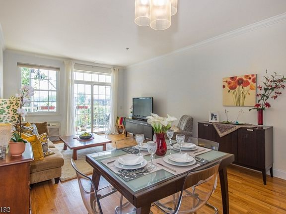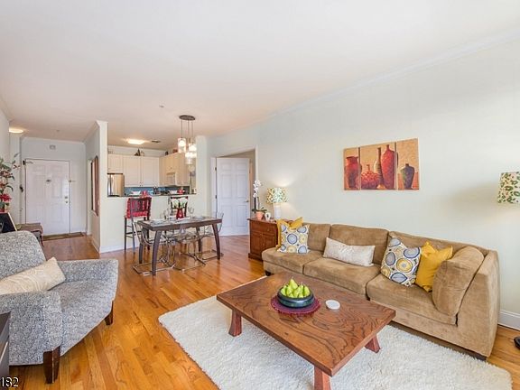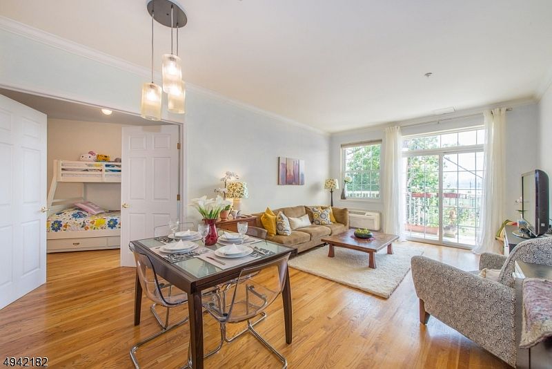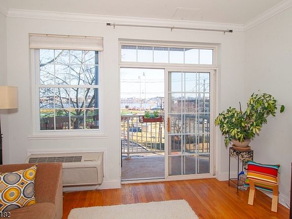 Amazing 2 Bed / 2 Bath Condo. NYC & Park View from each room, 5 Min. stroll to Ferry & 15 Min. to NYC, Park & river-walk make this condo Xtra special. Low HOA & Ownership Cost. Great for Investor. Cook a meal in your modern open kitchen w/ granite counter overlooking your dining area and large living room with hardwood floors. Relax on your private balcony overlooking new park w/ views of the NYC skyline. Retire to your king sized bedroom w/ 2 closets incl. a large walk-in. Adjoining main bath. Second bedroom with walk in & en-suite full bath. Ultra quiet thermopane windows. Garage 1 parking included. Workout in the 3rd fl exercise room or in the park and river-walk across the street. Laundry on your floor. Bus to NYC stops in front. Short drive to I95, Rt46. Pet friendly, investor friendly building.