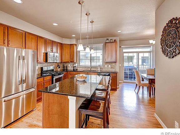 2013 Built Highly Upgraded Townhome with tons of space inside and out. Walk to restaurants, shopping, Farmer's Market, Civic Green Park & much more! . GRANITE COUNTERS, STAINLESS STEEL Appliances w GAS STOVE & UNDERMOUNT sink. Gorgeous hardwood floors throughout main floor, WROUGHT IRON staircase. CHERRY CABINETRY throughout, Updated lighting, FULLY FINISHED GARAGE with Apoxy Floor Coating and Shelving, Mountain Views of Devils Head and Pikes Peak! BALCONCIES off the Master and the Dining Area, and FRONT YARD TERRACE.
