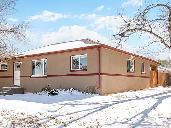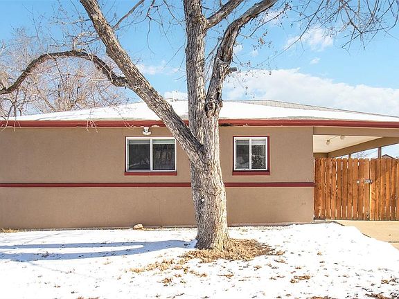 This Thornton gem is nestled on an oversized corner lot for maximum sunshine. Retreat indoors to find a charming entryway with a convenient coat closet. A trendy gray wall color — complemented by graywash-inspired flooring — emphasizes a custom-built media center accentuated by a modern electric fireplace. A stylish arched opening beckons residents into an eat-in kitchen with stainless steel appliances, sleek white cabinetry and outdoor access to the backyard. Each bedroom is a cozy retreat with flexible uses as guest bedrooms or home offices. The primary bedroom boasts backyard views and a newer en-suite bathroom with chic dark cabinetry and a vessel sink. The coveted Colorado climate is easily enjoyed outdoors beneath a covered concrete patio that overlooks a backyard surrounded by private fencing. This outdoor oasis also includes a playground and a sandbox so that the retreat may be enjoyed by all. A newer electrical panel and central AC are added conveniences for this treasured home.