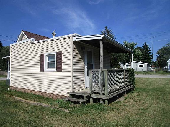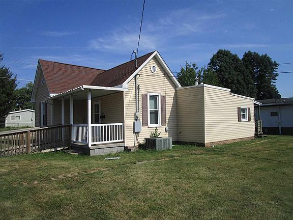 Handicap entrance into this 2 Bedroom home. Double closets in the Bedroom. 2nd room is 9x13 has hookups for Washer/Dryer and closet for storage. Electrical panel is covered and outside by C/Air unit. Water heater is hidden in corner of Kitchen-counter top can be removed for access if needed. Replacement Windows. Within last 10 years: New roof, inside home painted, new furnace, New shower, water heater, c/air. Refrigerator, stove, lawn mower all stay but not warranted. Home is on 60 x 150 lot which goes to the alley on West side. Estimate of taxes with only owner occupied would be $507.24.