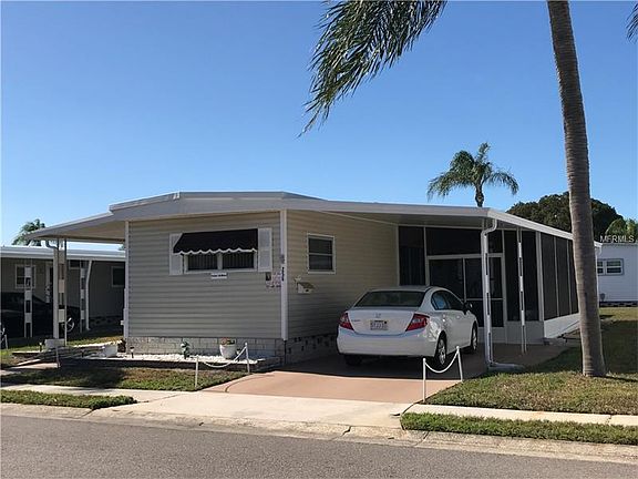 CUTE AND COZY AND READY FOR A NEW OWNER. EVERYTHING STAYS WITH THE HOME. MOVE RIGHT IN AND HAVE YOUR OWN FULLY FURNISHED FLORIDA HOME. ROOF OVER VINYL SIDED AND SPLIT BEDROOMS ON EACH END OF THE HOME. FLORIDA ROOM AND SCREEN ROOM MAKE THIS SINGLE WIDE FEEL SO MUCH BIGGER THAT THE SQ FT SAYS IN PUBLIC RECORDS. YOU MUST SEE THIS CUTE LITTLE DOLL HOUSE. WELL KEPT AND CLEAN! THE 55+ COMMUNITY IS ONE OF A KIND WITH ALL THE ACTIVITIES YOU COULD WANT. INCLUDING A 9 HOLE PAR 3 GOLF COURSE IN THE MIDDLE THAT YOU CAN PLAY ON EVERYDAY FOR A YEARLY FEE OF $305. 2 POOLS AND FULLY COVERED SHUFFLE BOARD COURTS. COME SEE THIS COMMUNITY AND MAKE AN OFFER TODAY!