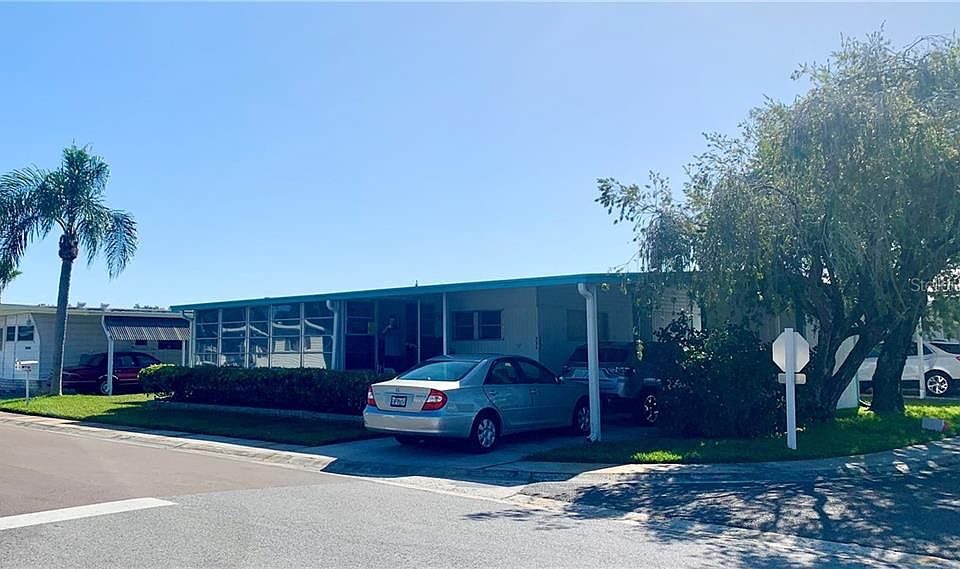 WHAT A GREAT LOCATION ON A CORNER LOT IN THE MIDDLE OF THE COMMUNITY. HOME SITS SIDEWAYS ON THE LOT AND THE FLORIDA ROOM OVERLOOKS THE CORNER WITH PATIO UNDER CARPORT. 2 BEDROOM 2 BATH. OPEN FLOOR PLAN AND A BEDROOM AND BATH ON EACH END OF THE HOUSE. (SPLIT PLAN) DINING ROOM HAS BUILT IN HUTCH AND THE KITCHEN IS SMALL BUT FULLY FUNCTIONAL. WALK IN CLOSET IN THE MASTER BEDROOM. WITH SOME UPDATES THIS HOME COULD BE WORTH A MINT DUE TO THE LOCATION. ALWAYS ACTIVITY GOING BY. THIS HOME IS AVAILABLE IMMEDIATELY. THE 55+ COMMUNITY IS ONE TO TALK ABOUT. THE PAR 3 GOLF COURSE IN THE MIDDLE IS A GREAT FEATURE AND KEEPS EVERYONE ACTIVE. YOU CAN CHOOSE TO PLAY SHUFFLEBOARD ON THE 8 FULLY COVERED COURTS. 2 POOLS AND JACUZZI'S AND THE NEW CLUBHOUSE WILL BE HERE IN THE NEXT YEAR. THE LIST PRICE INCLUDES THE SHARE IN THE LAND.