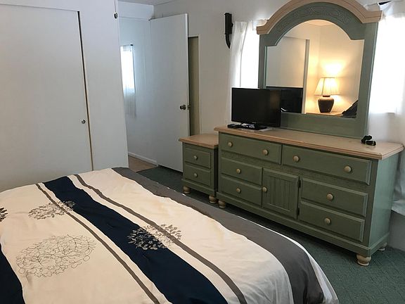 Fully furnished mobile home with carport in a 55 plus community with all the amenities including 2 pools, golf course, recreation center, library, shuffle board, bocci court, bike and golf cart parking areas, sidewalks, and social calendar. Everything you need for an active full life close to shopping and restaurants but a quiet place to live. Owner pays for water, high speed internet, cable tv, lawn and landscape care, pest control, garbage pickup. Renter pays electric bill as it comes due to owner. Renter must be 55 or over and pass both a criminal and financial background check. The renter must pay $100 to the homeowner association for the background check. Maximum 2 people both over 55 can rent and they must abide by the rules of the homeowner association. Parking is free in attached carport. There is a washer and dryer in the unit. Has central heat and air.