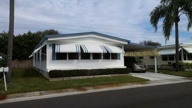 ONE OF THE LARGEST HOMES ON THE MARKET. 1440 SQ FT AND FURNISHED. DOTTED ITEMS DO NOT STAY WITH THE HOME. FRONT FLORIDA ROOM HAS BEEN MADE INTO PART OF THE LIVING SPACE WITH A/C DUCTS. BOTH BEDROOMS ARE LARGE IN SIZE AND HAVE WALK IN CLOSETS. BATHROOMS ARE WELL CARED FOR AND UP TO DATE. LIGHT CARPET THROUGHOUT WITH VINYL IN THE BATHROOMS AND KITCHEN. THE EXTENDED DRIVEWAY WITH A LARGE ENCLOSED SCREEN ROOM UNDER THE CARPORT. THE SHED IS ONE OF THE LARGEST IN THE COMMUNITY WITH A WASHER/DRYER AND WASH TUB ALONG WITH AN EXTRA REFRIGERATOR. VAPOR BARRIER HAS BEEN REDONE UNDERNEATH THE HOME AND A NEW A/C WAS INSTALLED IN 2010. THE LOCATION OF THIS HOME IS WITH IN WALKING DISTANCE TO ALL THE ACTIVITIES IN THE CLUBHOUSE. THE 55+ COMMUNITY IS ONE OF A KIND WITH A 9 HOLE PAR 3 GOLF COURSE IN THE MIDDLE OF IT ALONG WITH 2 POOLS AND LARGE CLUBHOUSE.