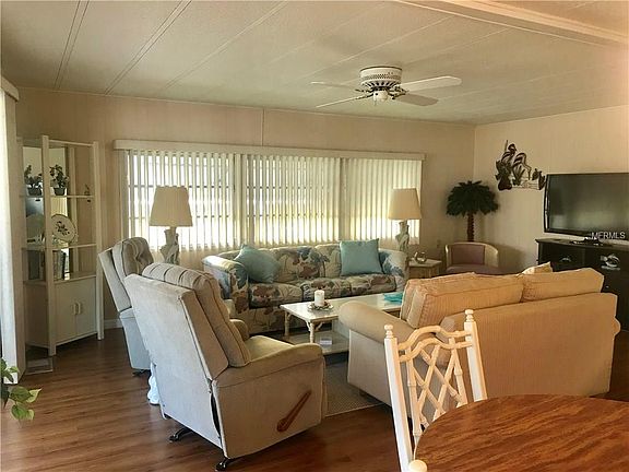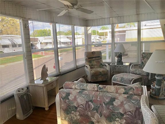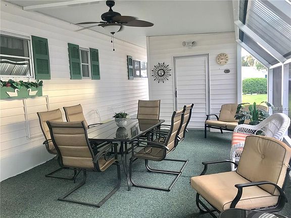 THIS 2 BEDROOM 2 BATH HOME IS MOVE IN READY AND CAN CLOSE RIGHT AWAY. VINYL SIDING AND NEW ROOF OVER, 2017 A/C SYSTEM, SCREEN ROOM ONLY A FEW YEARS OLD WITH EXTENDED DRIVEWAY. LAMINATED WOOD FLOORS THROUGHOUT. FULLY FURNISHED/MODERN STYLE. NEWER APPLIANCES AND A OPEN KITCHEN THROUGH TO THE LIVING AREAS. FLORIDA ROOM ACROSS THE FRONT OF THE HOME WITH UPDATED WINDOWS AND BRIGHT THROUGHOUT. THIS HOME IS PERFECT FOR ENTERTAINING. JUST BRING YOUR CLOTHES AND MOVE RIGHT IN. NOTHING TO DO IN THIS IMMACULATE HOME. THIS COMMUNITY IS FOR 55+ RESIDENTS. THERE IS SO MUCH TO DO TO STAY ACTIVE. THE GOLF COURSE WILL KEEP YOU BUSY OR TRY THE FULLY COVERED SHUFFLE BOARD COURTS. 2 POOLS AND JACUZZI'S FOR THE SUN LOVERS. A LIBRARY AND A FITNESS ROOM ALONG WITH 2 POOL TABLES AND BINGO EVERY THURSDAY FOR A SMALL FEE. COME LOOK YOU WON'T BE DISAPPOINTED.