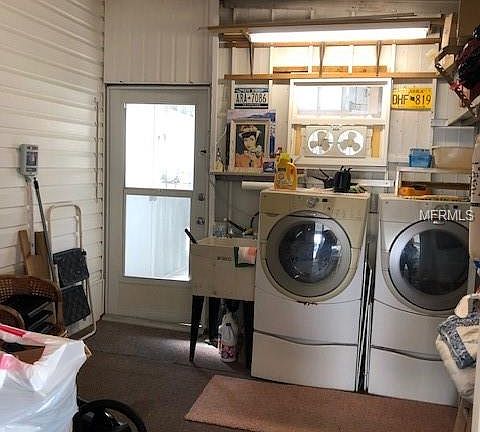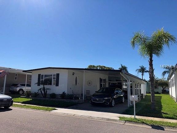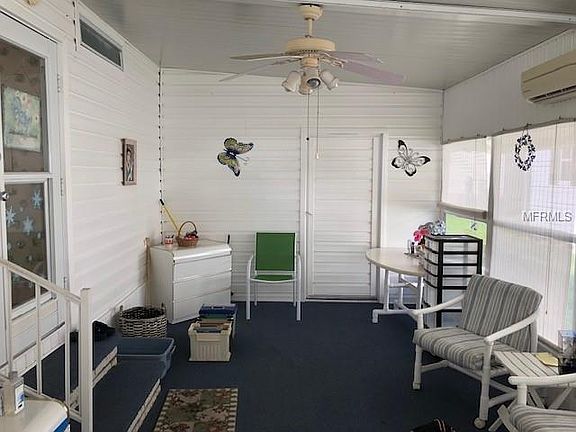 Home shows very well. New insulated Windows, Roof Over, A/C 2006, newer hotwater heater in utitilty shed. Newer Kitchen cabinets and appliances. counter tops. built in microwave, dishwasher. laminated floors in kitchen. Dining room has newer china cabinet ( refaced) front florida room, has rattan furniture, a picture window, new entrance front door. Living room, has a flat screen tv. home is furnished. two bedrooms and oth bathrooms updated, see photos. there is also a large side enclosed porch with windows and screens. outdoor carpeting, ther are two sheds, one huge with a front load washer and dryer on stands, lots of shelfing, ther is a double sliding screened door entry for a golf cart. to the patio, then the large shed and then another shed behind the laundry one, that has double door entry, grill area outback too. Driveway widend and pebble tec stone on driveway.